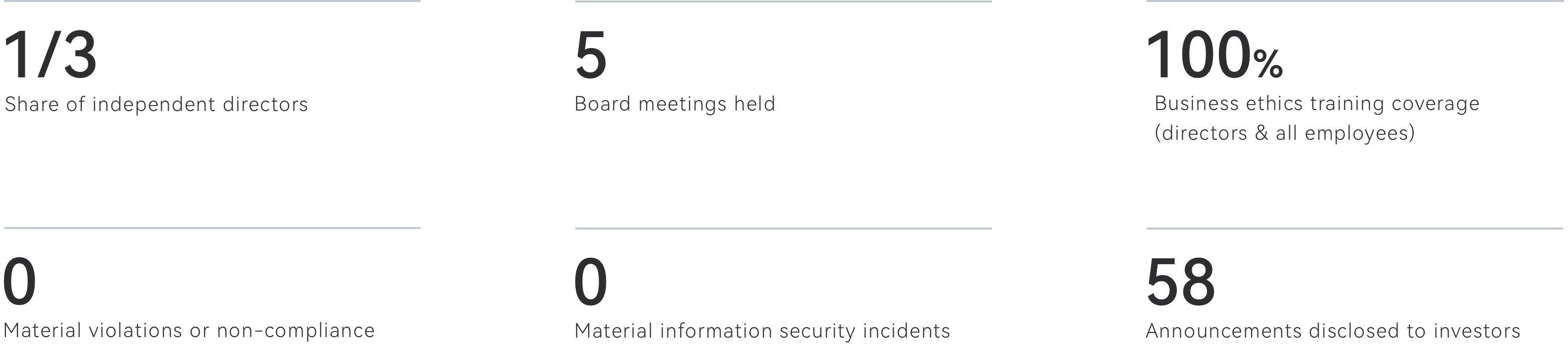 We continuously strengthen our governance, maintain transparent and open communication with stakeholders, and uphold robust business ethics to achieve compliance, mutual trust, and shared success.